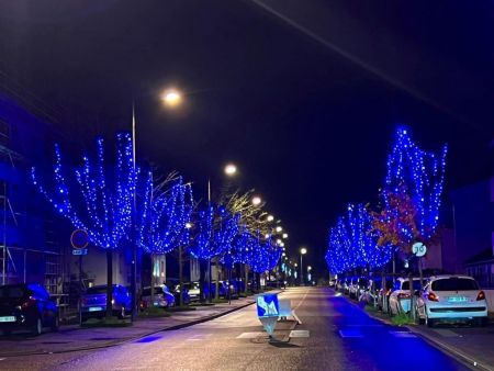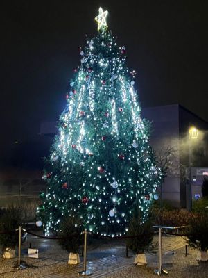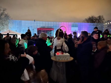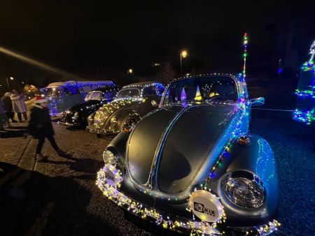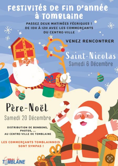 La tradition, c’est lorsque St Nicolas s’adresse aux enfants au micro, puis qu'avec le Maire, il traverse la Place des Arts. Un gros bouton rouge a été installé sur un socle, le maire va devoir appuyer sur le bouton pour déclencher toutes les illuminations de la ville. Tous ensemble on compte à rebours, le décompte s’affiche sur écran géant, mais tous les ans ça ne fonctionne pas du premier coup, il faut recommencer et compter plus fort… Mais la deuxième fois, ça ne marche pas non plus, il faut que toute la Place des Arts compte fort et … la troisième fois lorsque le maire appuie sur le gros bouton rouge, la Place des Arts s’illumine enfin, le sapin majestueux aussi, entouré de feux d’artifice et des coccinelles et combi Vokswagen de l’association Nancy Aircoold Outlaw (un grand merci pour leur participation), véhicules de collection décorés de guirlandes lumineuses, qui klaxonnent alors pour célébrer ce lancement officiel des fêtes de fin d’année à Tomblaine !