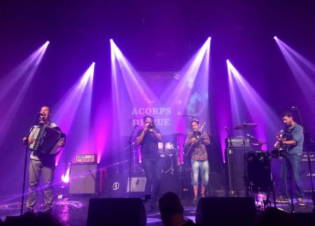 On ne. présente plus Acorps de rue, étant donné leur notoriété, mais aussi parce que ce sont des amis de Tomblaine. Le public tomblainois ne les a jamais vus en grande formation, avec cuivres, trombone, trompette, qui viennent s’ajouter à l’accordéon, la guitare, la basse le ukulélé … et les voix !
