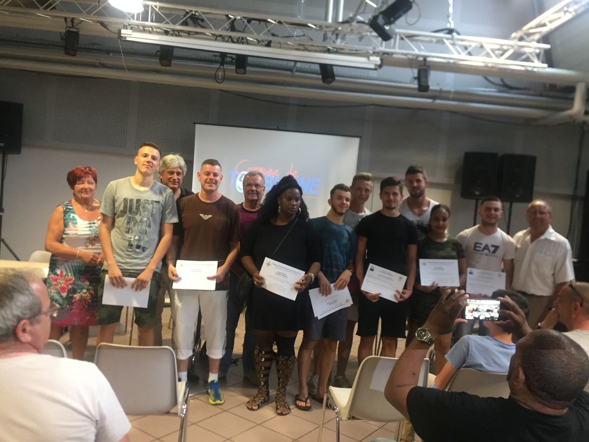 On y a parlé récompenses mais aussi projets à venir. 10 jeunes Tomblainois ont été récompensés de leurs efforts car ils ont obtenu le PSC1, diplôme d’aptitude aux premiers secours et également le diplôme de surveillant de baignade ce qui leur permettra de trouver facilement du travail cet été en particulier dans les centres de vacances.