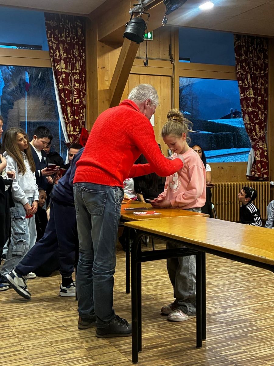 Un enfant était arrivé en classe de neige avec un plâtre et n’a donc pas pu skier, mais il a participé à un certain nombre d’activités et, lors d’un jeu, il a même gagné une paire de ski, offerte par un commerçant de La Clusaz ! Pour cette soirée des récompenses, il s’est donc vu offrir aussi une petite médaille pour sa participation …