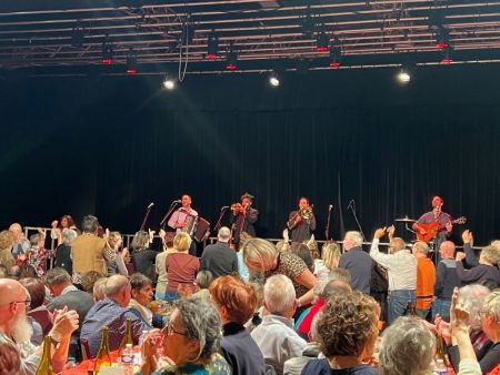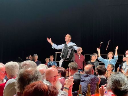 Le public ne s’y est pas trompé, la salle était archi-comble, on a goûté avec délectation le Beaujolais Nouveau et « Acorps de rue » a embarqué son public dans un concert de deux bonnes heures. Les spectateurs ont chanté, dansé, tapé dans les mains … De beaux textes, d’excellents musiciens, une prestation festive toute la salle a fini debout …