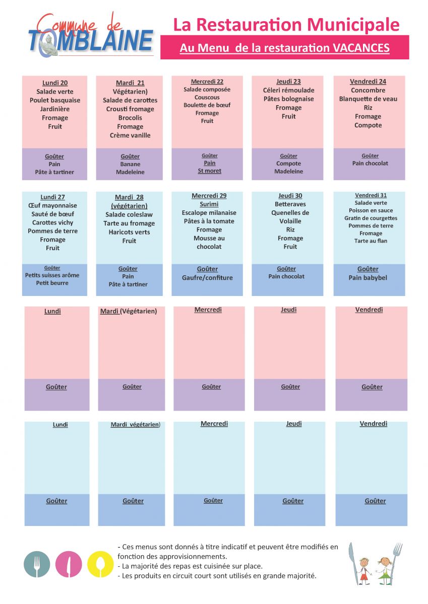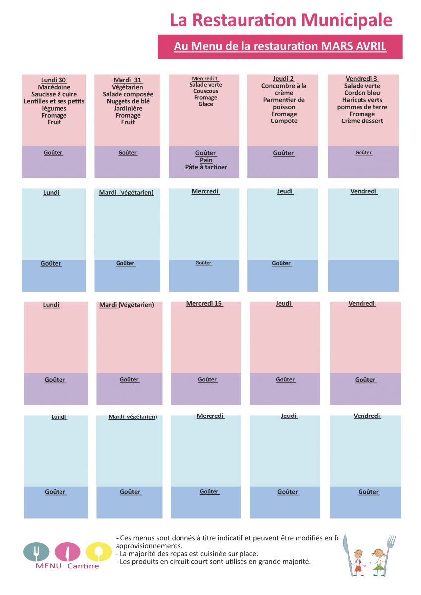 4. Plannings des activités Ateliers d'accueil - Restauration scolaire