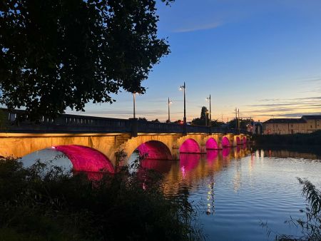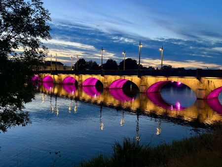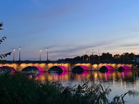 Mercredi 1er octobre, le vieux pont de Tomblaine s’est habillé de rose et le sera tout le mois d’octobre (photos Alexandre Huet).